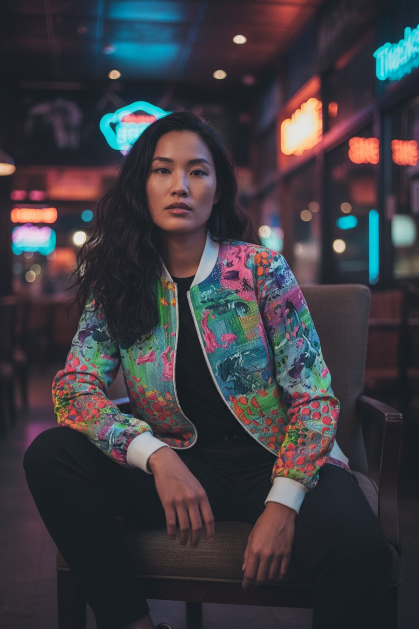 With a silk exterior and a splashy cotton interior, this stunning jacket does the job of two: flip it inside out for a completely new look. From a modern textured abstract to an organic watercolor, this soft and warm outerwear will have you make a statement with either side. The vibrant looks compliment each other, adding to a tasteful pattern match. Stay bright. Stay happy.