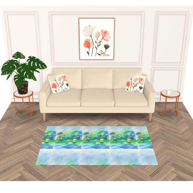 Let your mind soar and dream of floating and flying with the mystery of blues and greens across the peaceful sky.Sink your toes into the luxury of this thick velvet rug, guaranteed to take your living space to the next level. Stay bright. Stay happy.