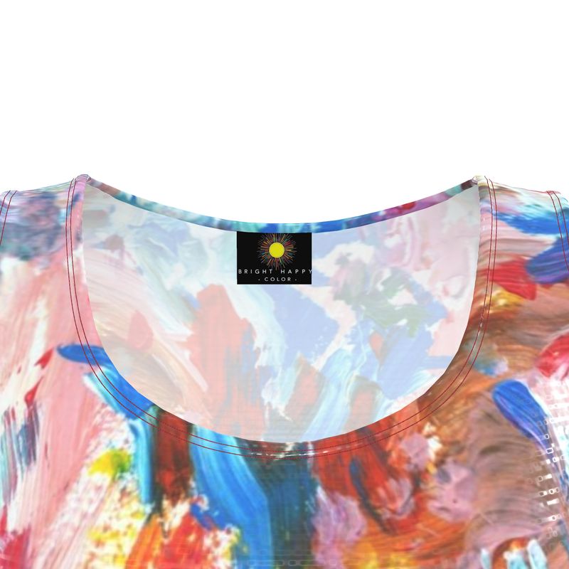 Embrace your curves in this vibrant abstract fit and flare dress with splashes of color. Choose from your favorite fabric and go anywhere your heart desires. Stay bright. Stay happy.