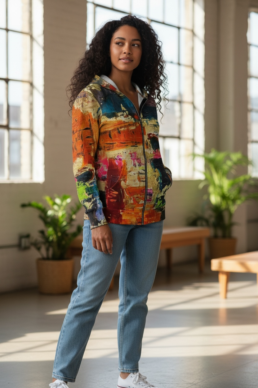 Sparkle and shine with a stylish and warm hoodie based on original abstract art. Live your most vibrant self while staying cozy in the breeze. Stay bright. Stay happy.