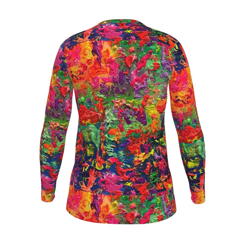 Embrace the changing of leaves with this vibrant abstract t shirt, with your choice of neckline and sleeve length. Customize this bold and original top to make it uniquely yours and say yes to an easy outfit with jeans, slacks, or shorts. Dress it up or down and strut your stuff! Stay bright. Stay happy.