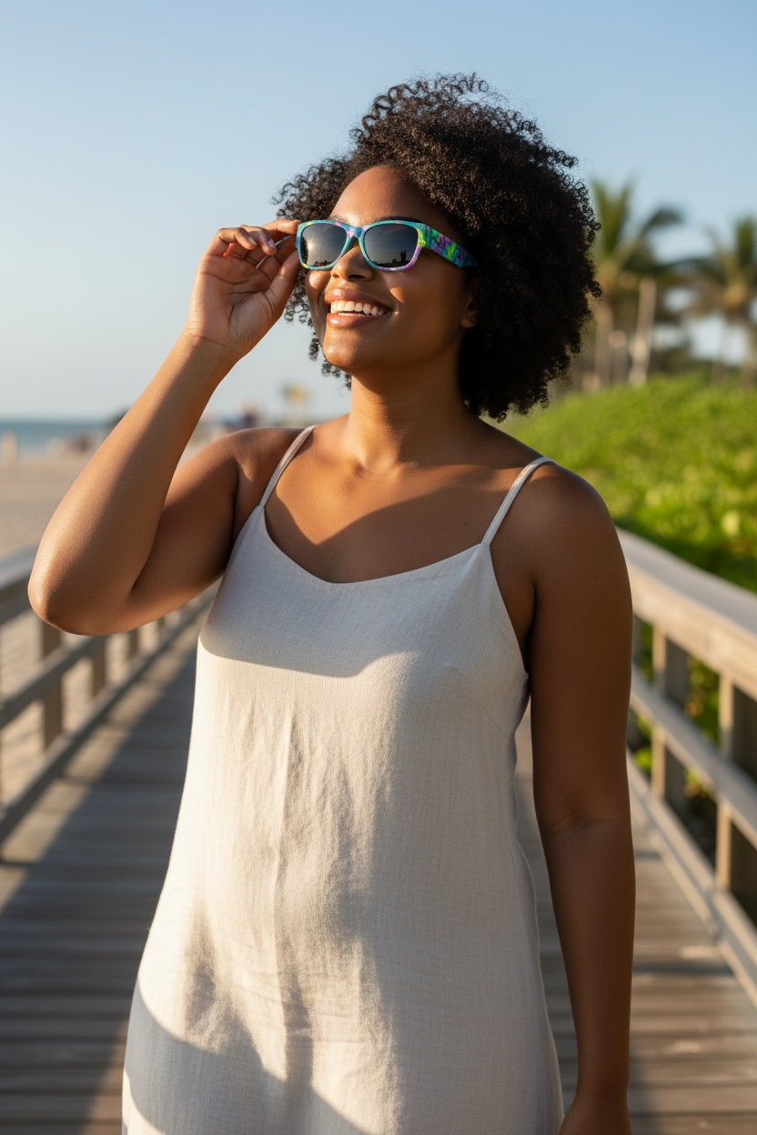 Keep your eyes protected without sacrificing style in these bright, head turning sunnies. Grab a bite with friends and make sure to enjoy the compliments in your Sunlit Scatter Shades. Stay bright. Stay happy.